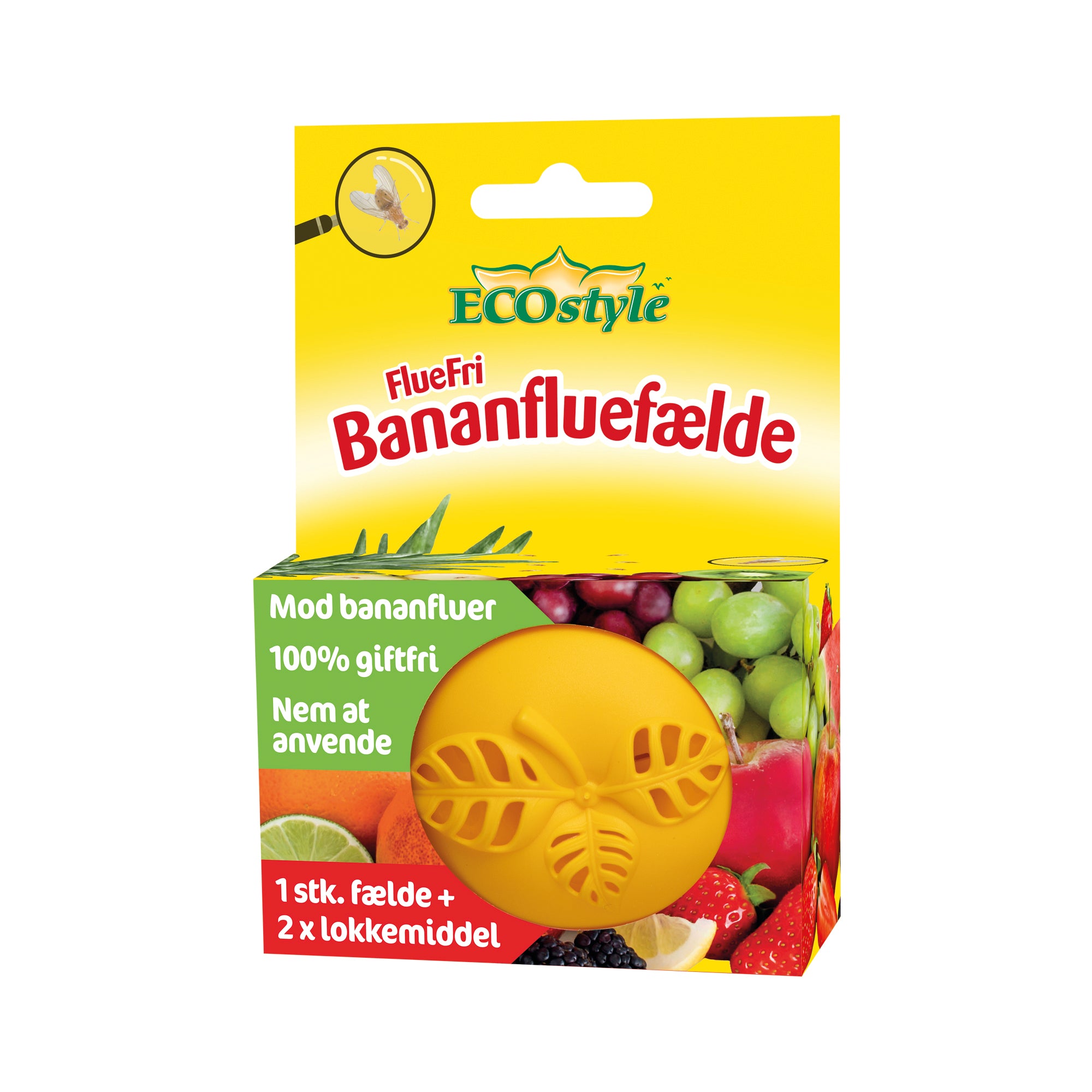 Kom af med bananfluer på den nemme måde ved at sætte en FlueFri Bananfluefælde i skålen med frugten. Fælden fungerer som en bananfluefanger og hjælper dig til nemt at komme af med bananfluer.