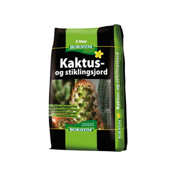 HORNUM® Kaktus- og stiklingsjord er en mildt gødet muld tilsat kalk, for at opnå den rette pH balance for kaktus og stiklinger. Mulden er iblandet sand for at give bedre dræningseffekt og for at gøre det nemt for f.eks. stiklinger at danne rodnet.