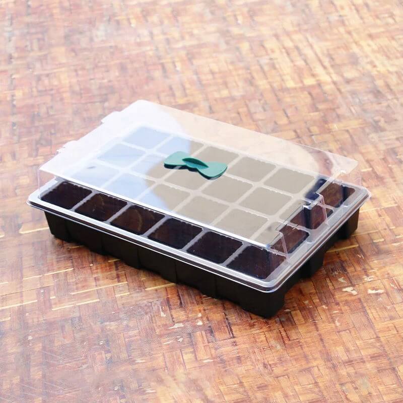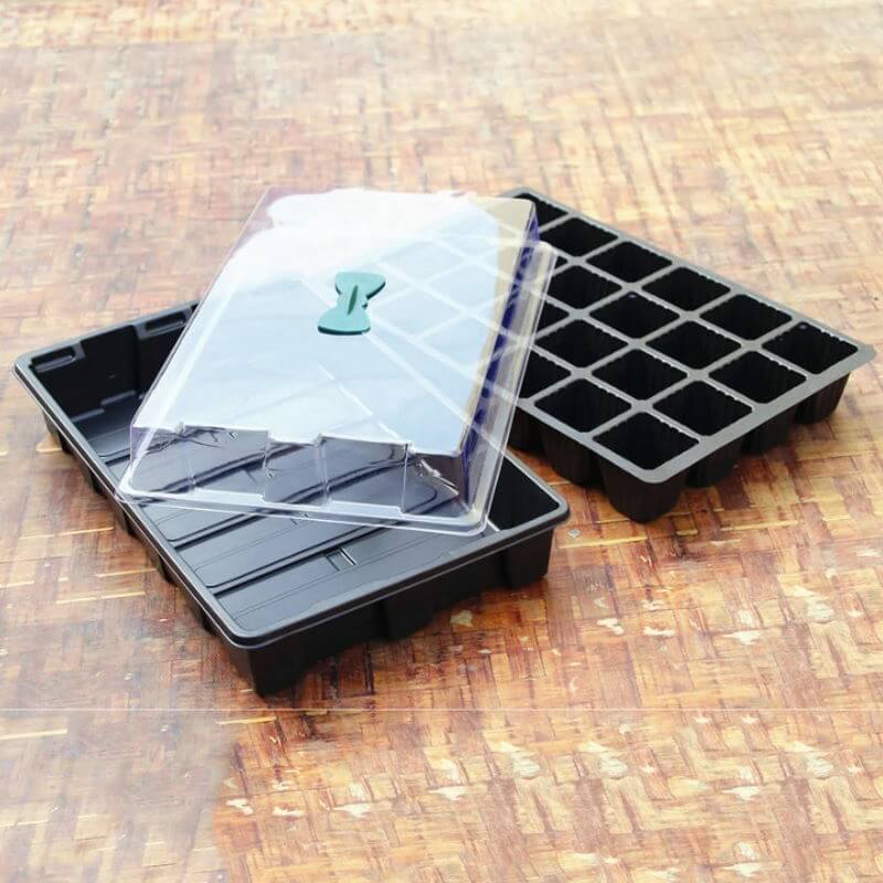 - Sæt med bakke, cellebakke med huller og drivhuslåg.