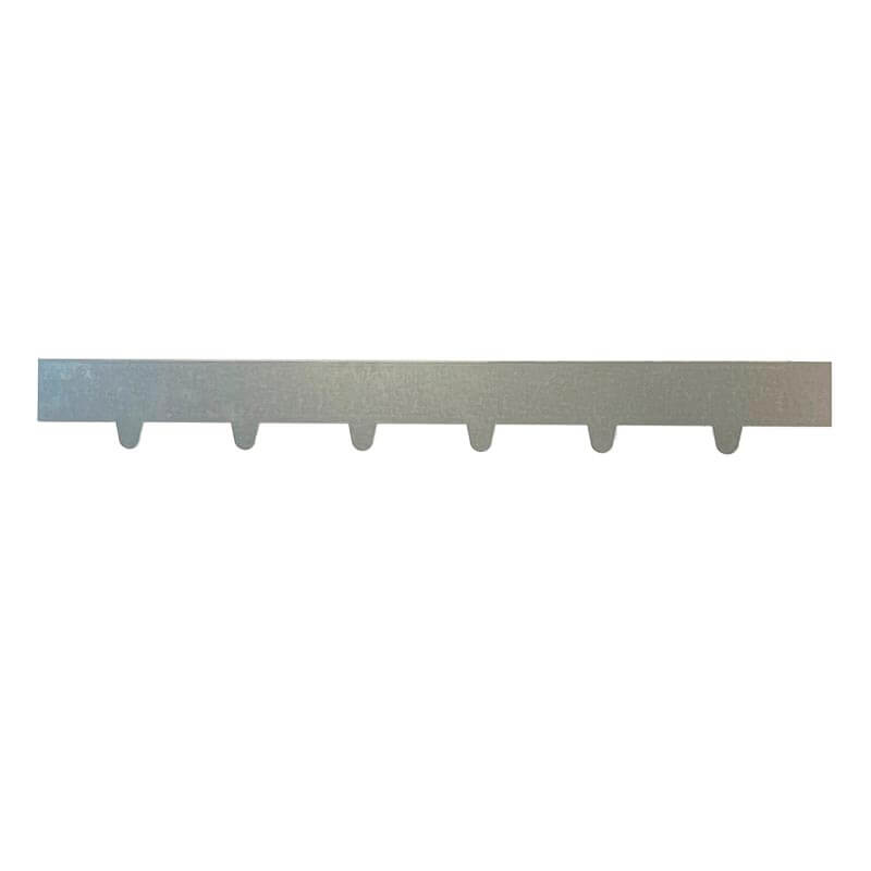Mål: L: 110 cm / H: 13 cm (med takker) (9 cm uden takker) Tykkelse: 0,6 mm.