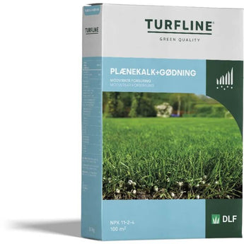 Turfline Plænekalk + gødning udmærker sig ved, at plænen gives kalk og gødning i én arbejdsgang. Du får her et smart 2-i-1 produkt, som vil give din græsplæne de bedste vækstrammer.