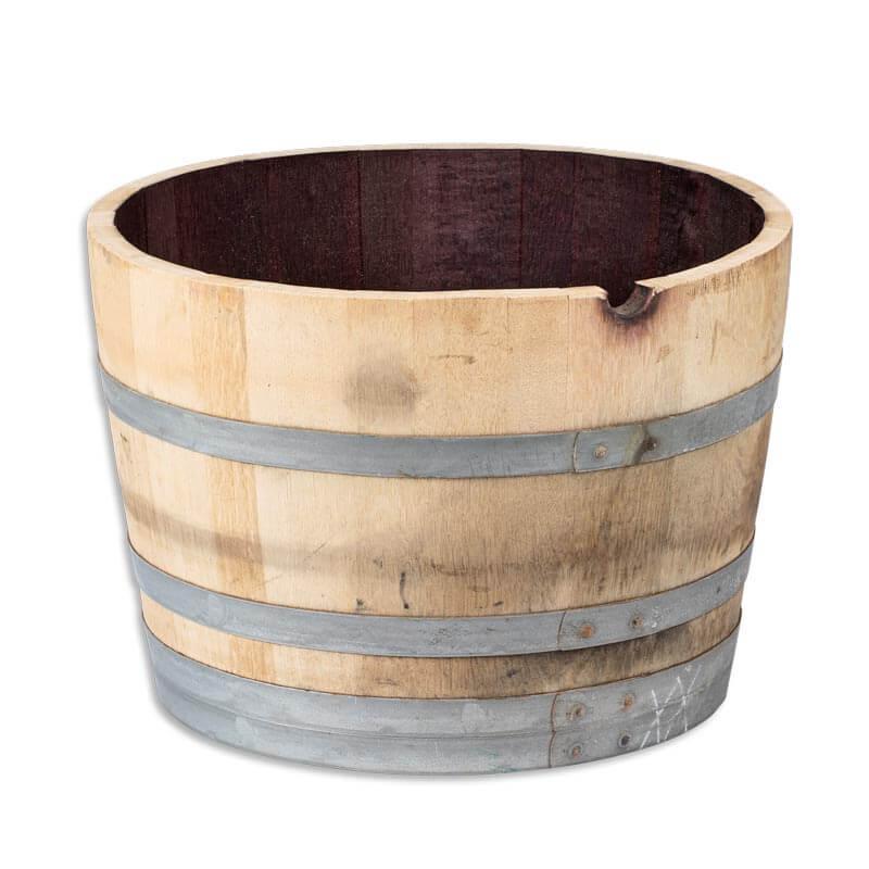 Vores halve vintønder er lavet ud af en brugt vintønde, som vi har skåret over på midten og skånsomt slebet kanterne fri for splinter.