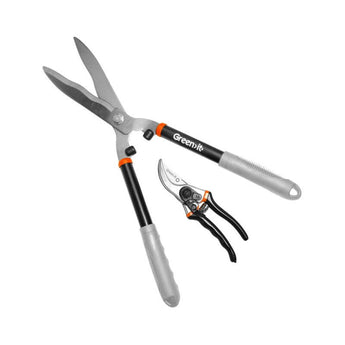 - Hækkesaks bølgeskær og fingerskrue til justering af skær.