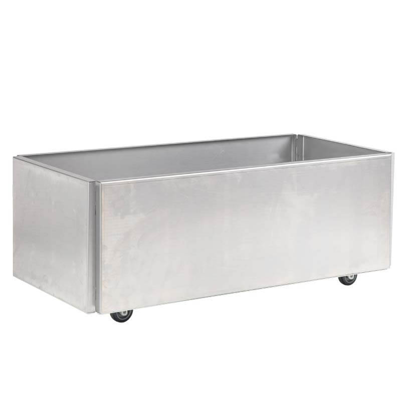 Her får du en komplet plantekasse med hjul lavet i galvaniseret jern, som ikke ruster eller tærer og derfor beholder det smukke og blanke udseende.