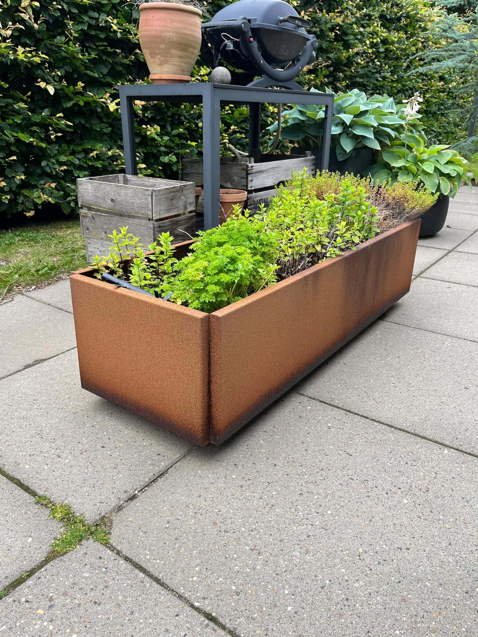 FREJA Plantekasse på hjul 120 x 40 x 27 - Rustjern