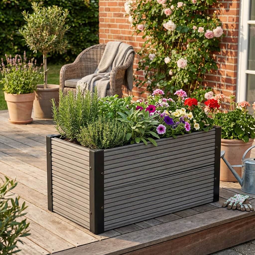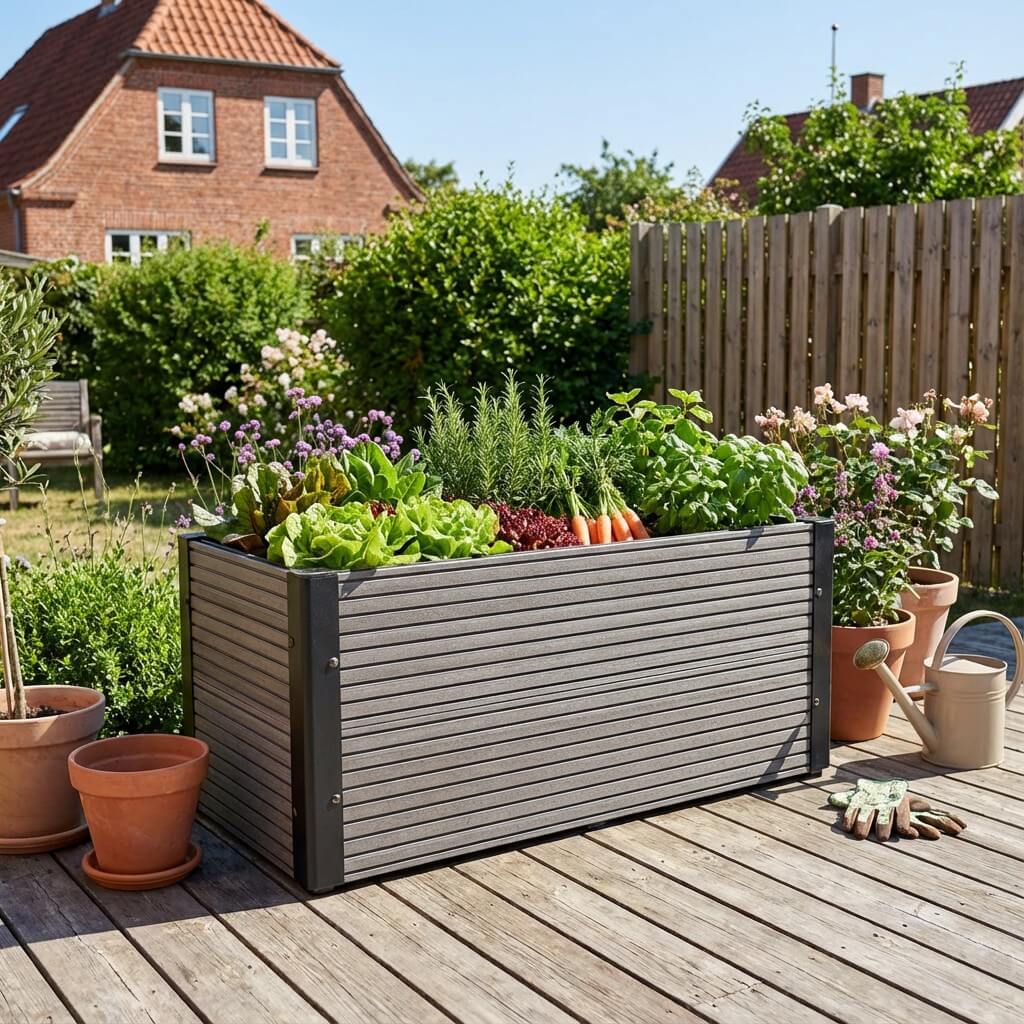 Flot og vedligeholdelsesfrit højbed i komposit, som har en fantastisk lang leve tid.