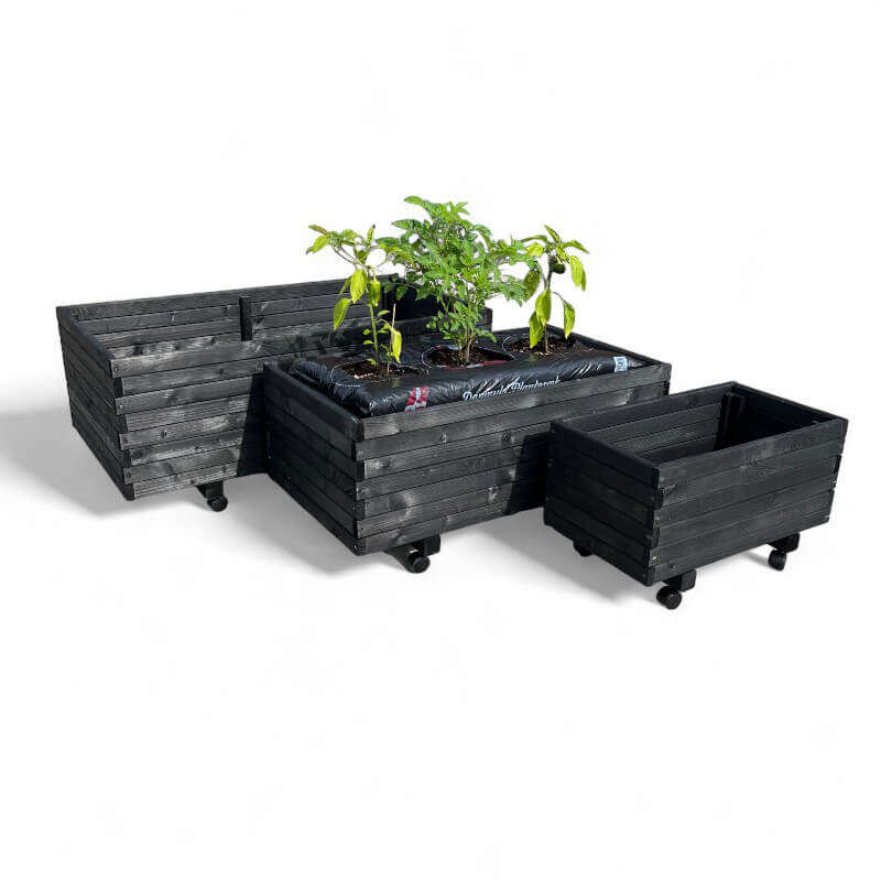 Plantekasse på hjul 110 x 60 x 41 cm - Sort træ