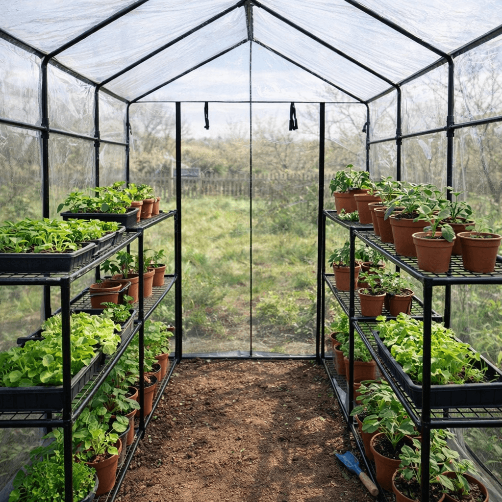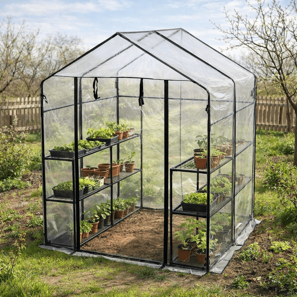 Praktisk drivhus i plastik med 8 hylder