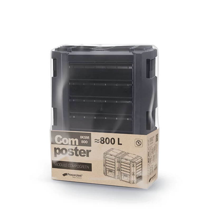 Her får du en solid kompostbeholder, som sikrer dig en fast levering af kompost i de næste rigtig mange år. Dette er en model, som kan indeholde 800 liter kompost.