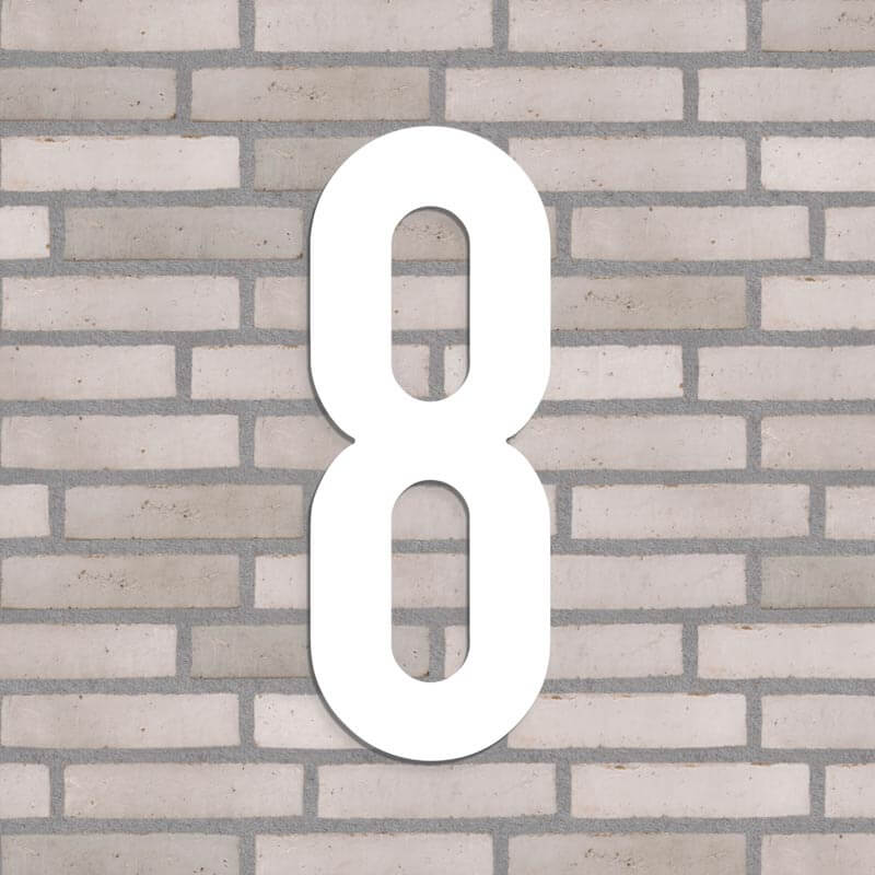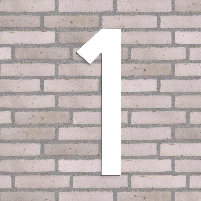 Vores hvide husnummer er lavet i PVC, som er beklædt med flot og langtidsholdbart aluminium. De er 3 mm tykke og til montering medfølger der 10 mm afstandsklodser, så tallet vil få en svævende effekt. Det skaber nogle utrolig flotte skyggeeffekter. Disse hvide husnumre er lavet i et materiale, som kræver minimal vedligeholdelse og aldrig ruster.