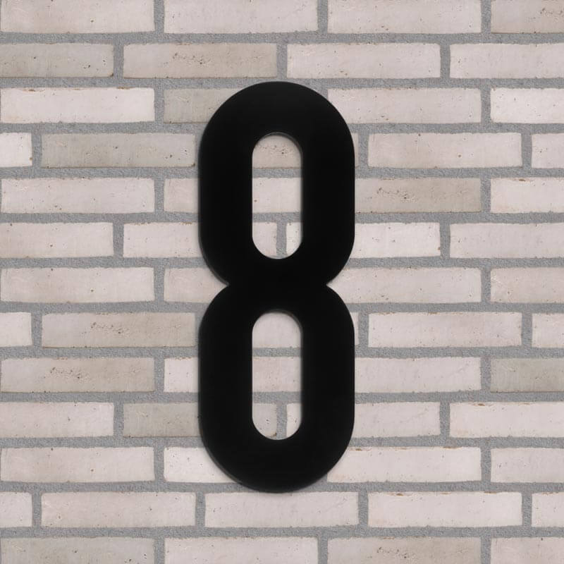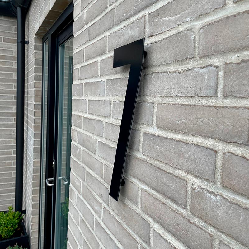 Dette sorte husnummerskilt er lavet i PVC beklædt med aluminium, som garanterer en lang levetid uden nogen som helst form for rust og misfarvninger. De er 3 mm tykke og til montering medfølger der 10 mm afstandsklodser, så tallet vil få en svævende effekt. Det skaber nogle utrolig flotte skyggeeffekter.