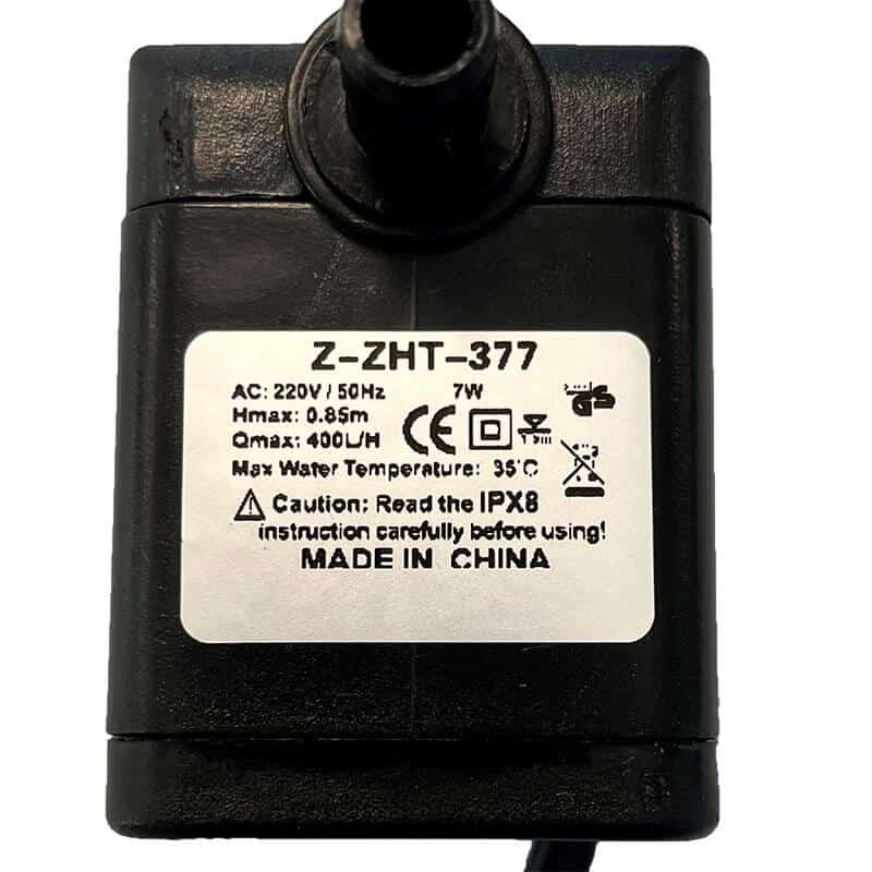 - Vandpumpe som kan bruges til springvand, vandsten, akvarier og lignende.