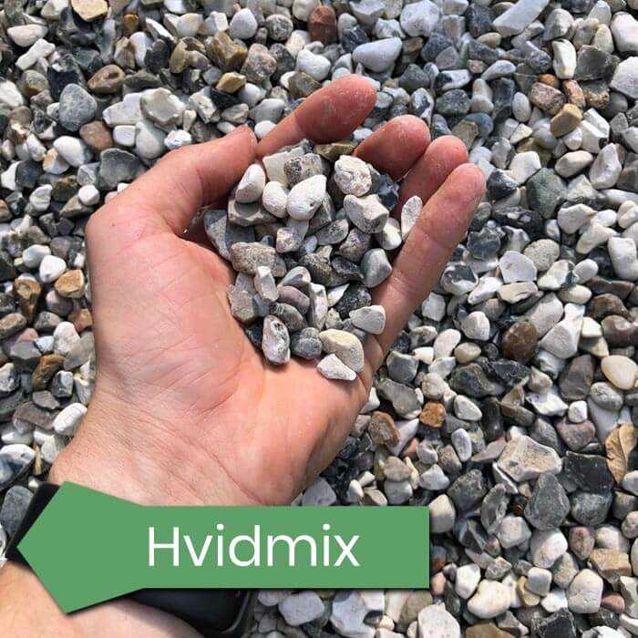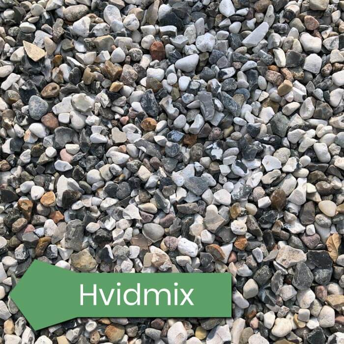 Hvidmix ærtesten udvindes langs den østjyske kyst, og er derfor et sø/hav materiale. Hvide ærtesten består ikke af 100% hvide sten, men en blanding af hvide, brune og mørke ærtesten. Størstedelen er dog hvide og produktet vil derfor fremstå meget hvidt..