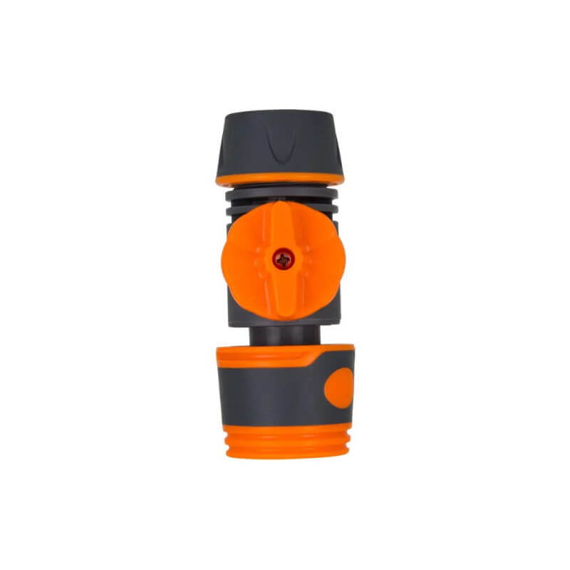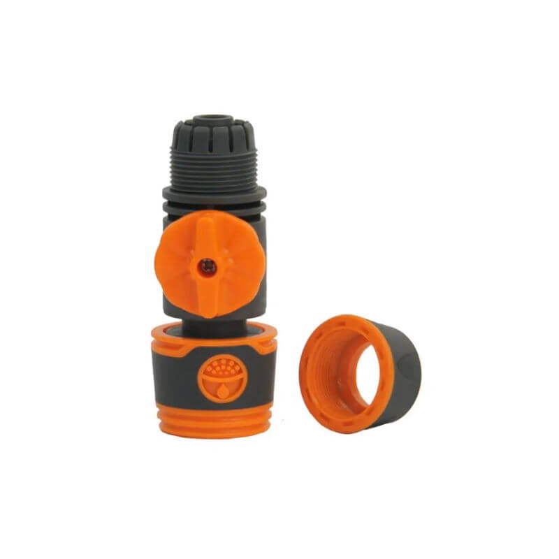 - Kobling med quick-connector og ventil til samling af vandslanger eller tilslutning til vandudtag.