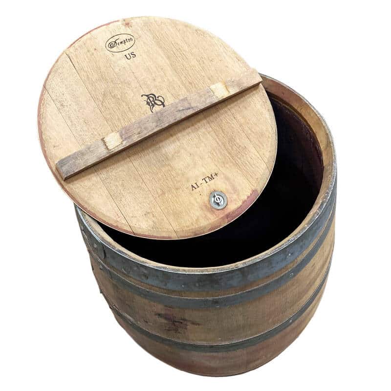 Vintønden er lavet af egetræ og kan bruges til opbevaring både ude og inde.