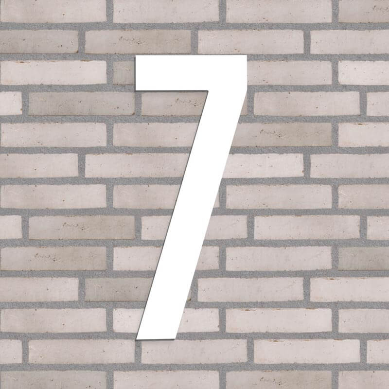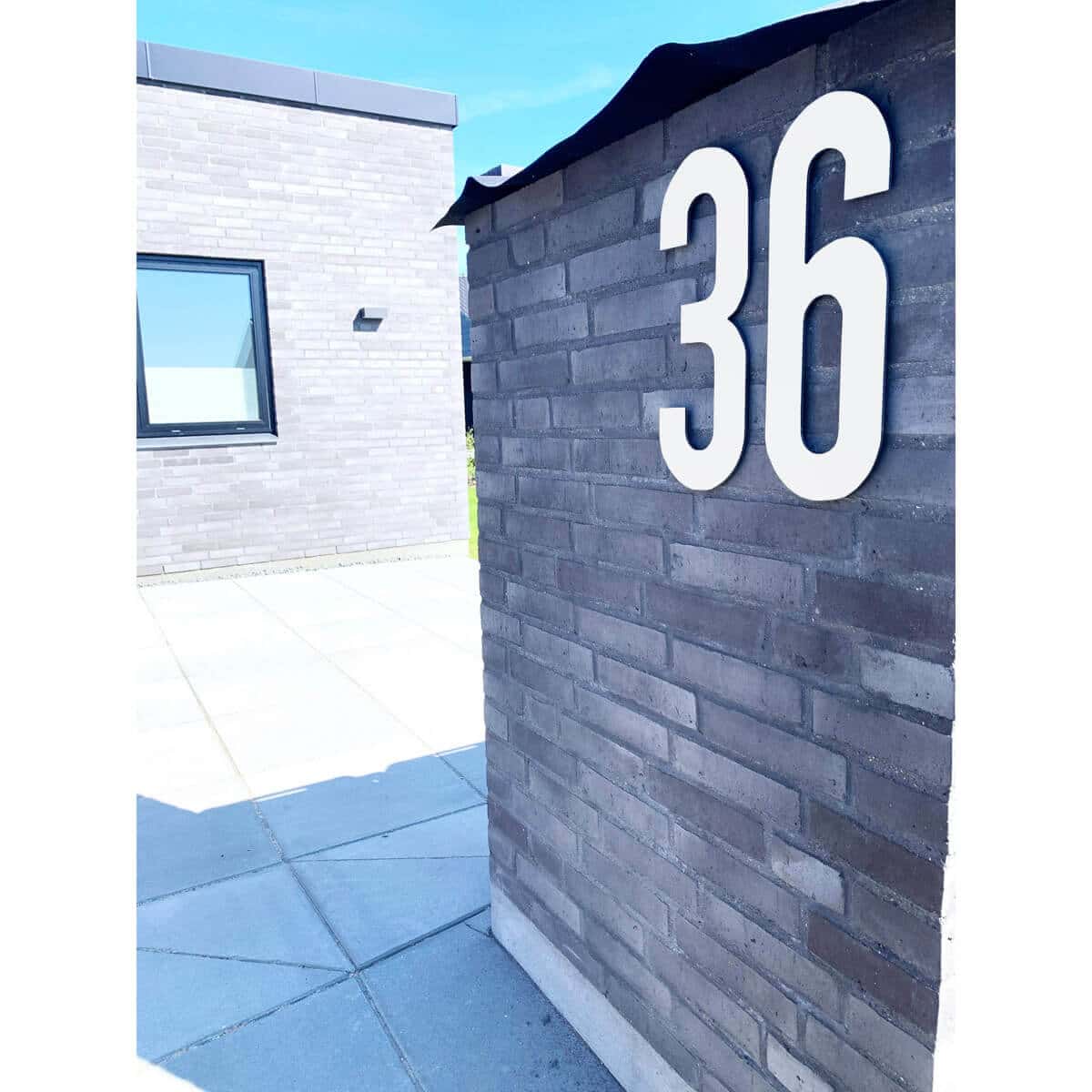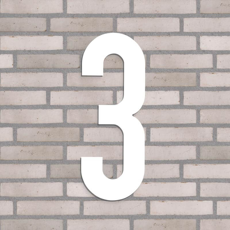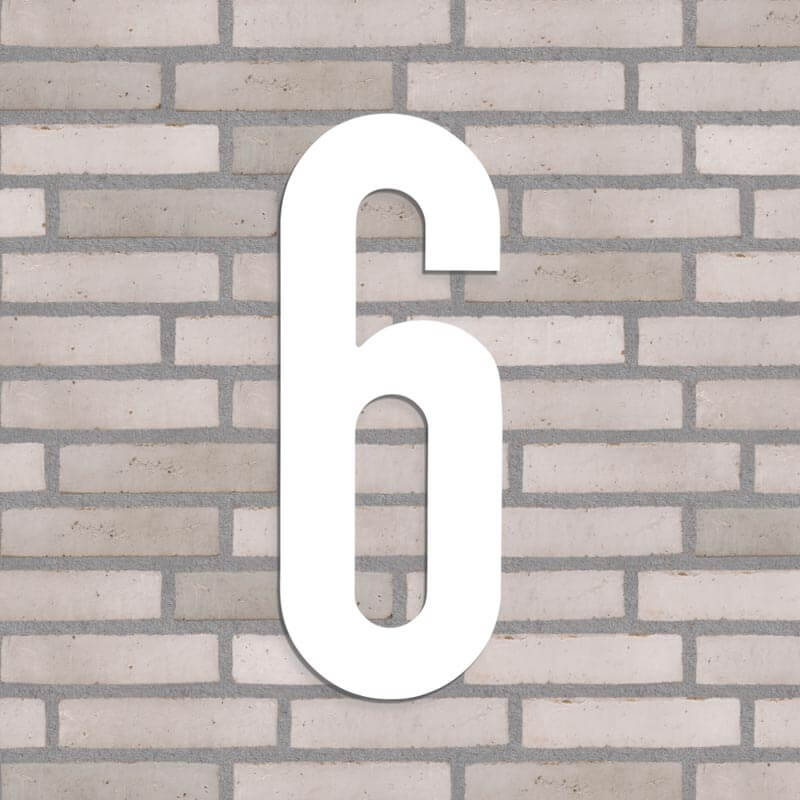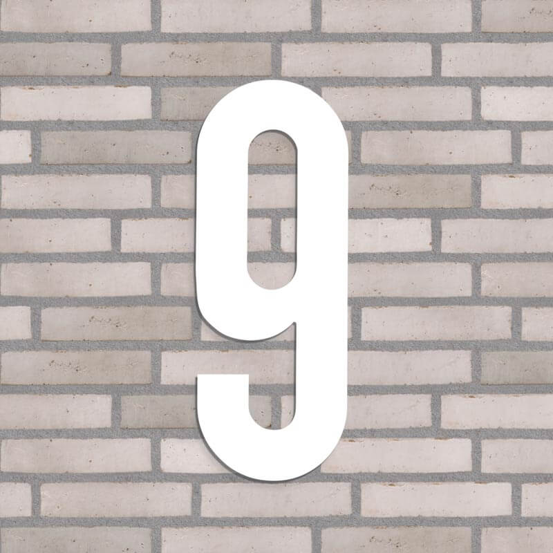 Flot husnummer i farven hvid. Lavet i PVC beklædt med vedligeholdelsesfrit aluminium, som hverken ruster eller får misfarvninger, trods regn, vind og vejr.