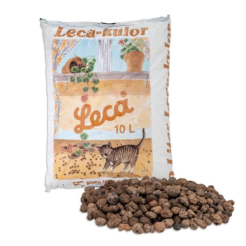 Leca kugler bruges ofte som et drænene og fugtafgivende bundlag i krukker, højbede og altankasser, eller blandes i plantejord for give bedre struktur.