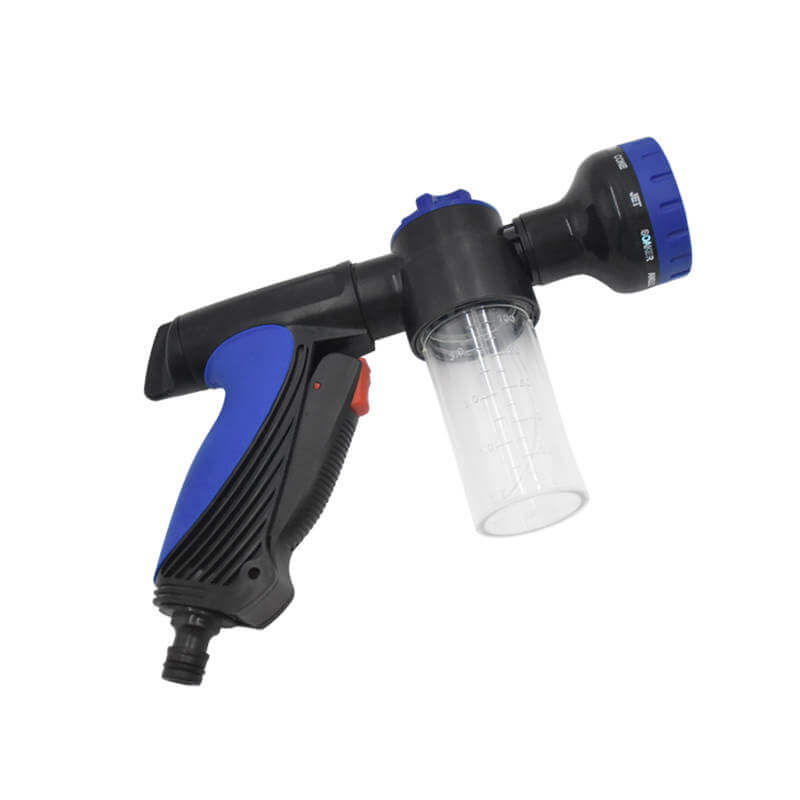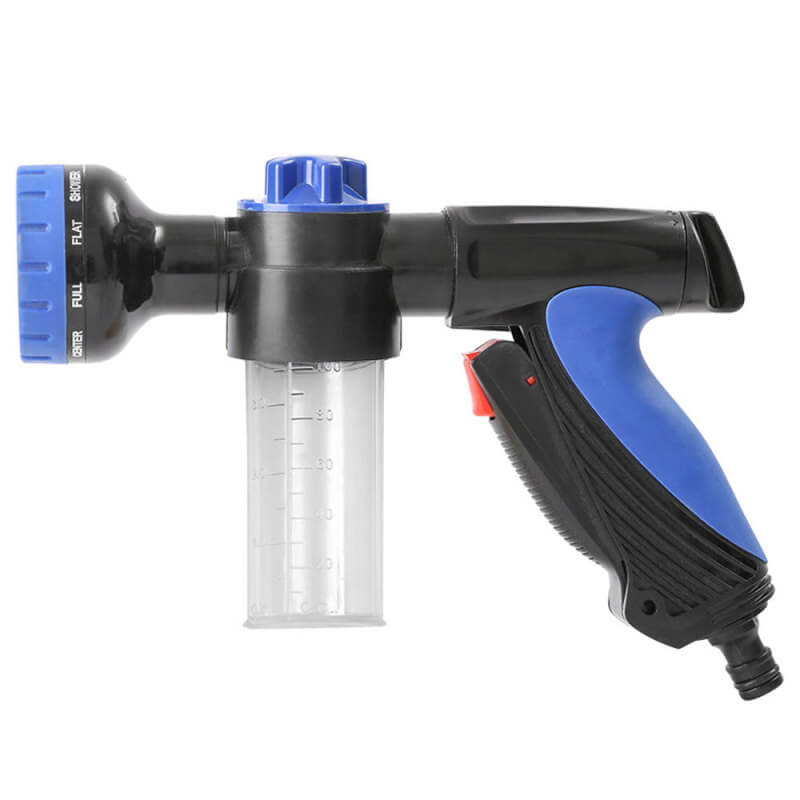 Smart skumpistol der nemt og hurtigt kan kobles til din vandslange. Den indbyggede beholder til sæbe, er udstyret med en slange der sørger for at der altid kommer sæbe ud, selv når den er ved at være tømt.